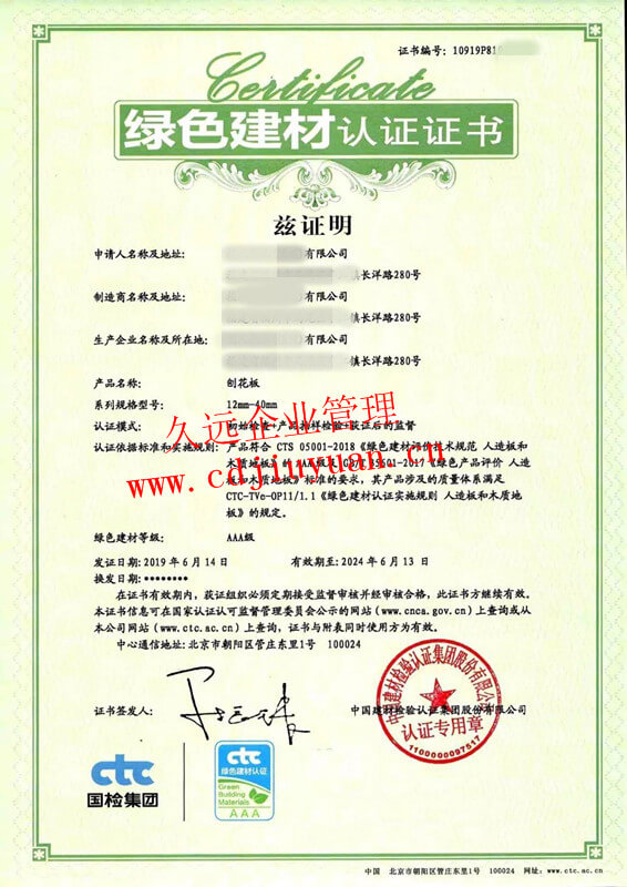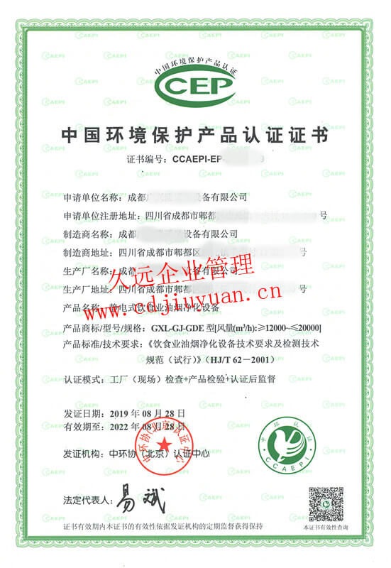 中國環(huán)境標志產(chǎn)品認證證書(十環(huán)認證)